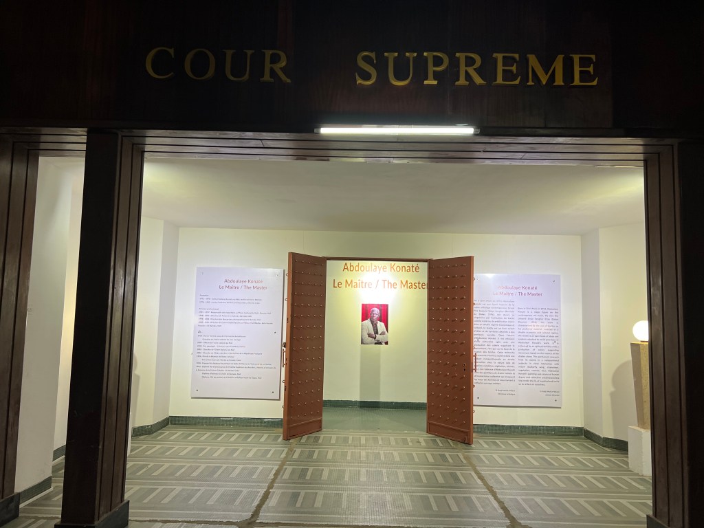 On entering the former courthouse, one is greeted by a monumental presence exuding from a building that once was a symbol of State power. As if to respond to this monumentality, the works exhibited near the entrance attempt to mirror the building in size. We are led through the works of such artists as Alioune Diagne, Beya Gille Gacha and Emmanuel Tussore.